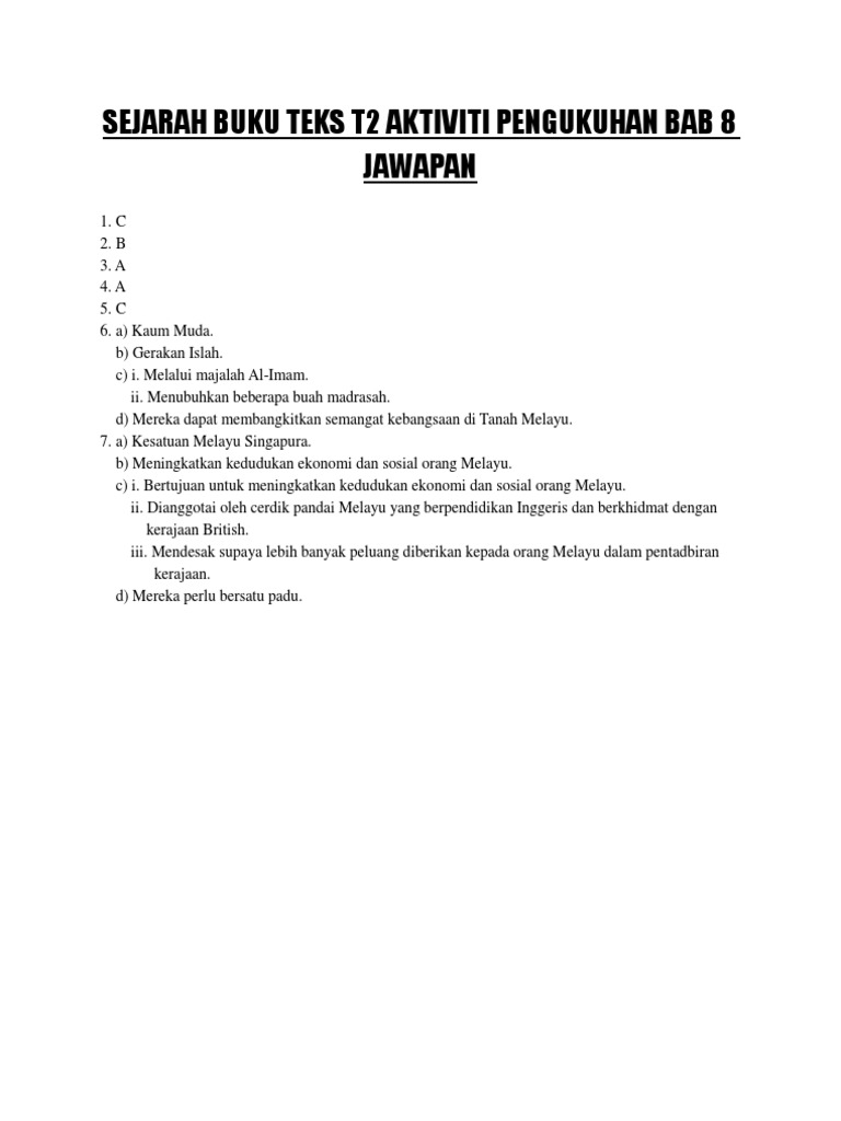 Sejarah Buku Teks Tingkatan 2 Aktiviti Pengukuhan Bab 8 Jawapan Pdf